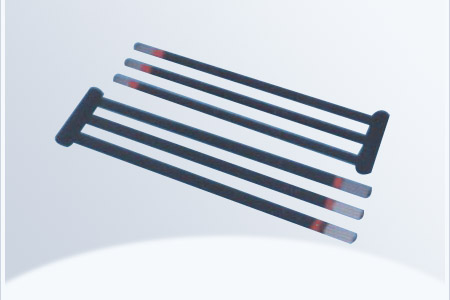 硅碳棒是用高純度綠色六方碳化硅為主要原料,按一定料比加工制坯,經(jīng)2200℃高溫硅化再結(jié)晶燒結(jié)而制成的棒狀、管狀非金屬高溫電熱元件。氧化性氣氛中正常使用溫度可達(dá)1450℃,連續(xù)使用可達(dá)2000小時。